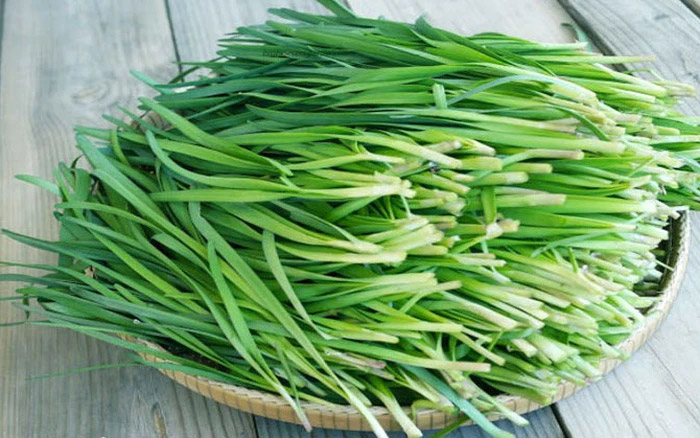 - Bạn rửa sạch lá hẹ
