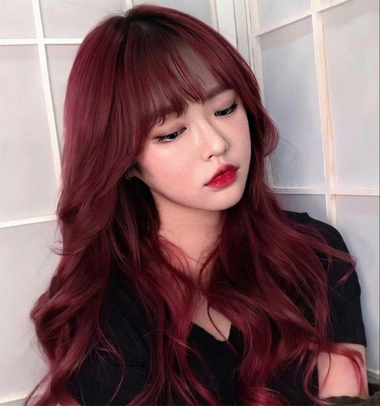 Màu đỏ rượu vang cũng là một trong những màu nhuộm mà nàng da ngăm không nên bỏ qua. Nó sẽ giúp mái tóc của bạn trở nên nổi bật và vô cùng cuốn hút.