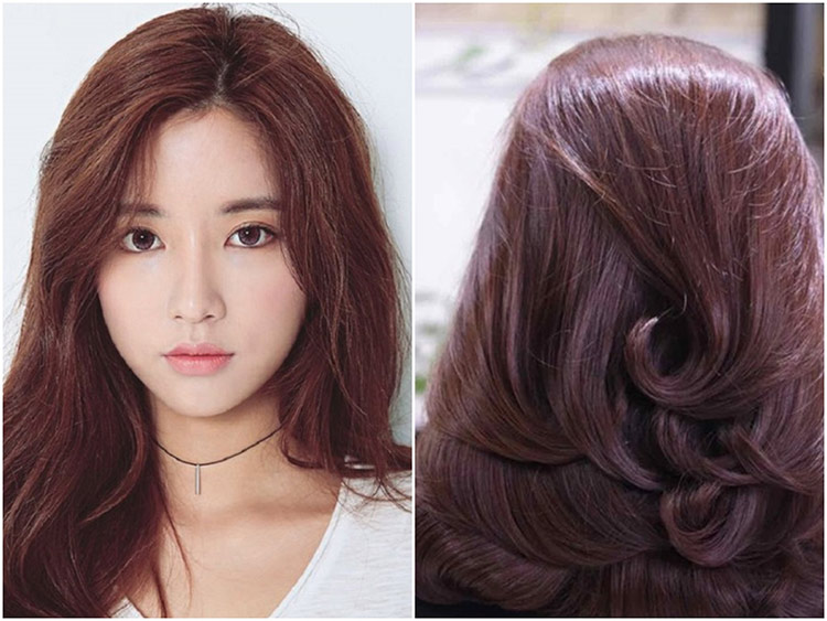 Màu tóc đỏ nâu ánh tím là một sự lựa chọn an toàn và vừa vặn cho cô nàng da ngăm. Nó không quá rực rỡ nhưng cũng không trầm, giúp nâng tông da một cách tự nhiên và ấn tượng.. Màu tóc này sẽ càng thêm tỏa sáng nếu tiếp xúc với ánh nắng, đem lại cho bạn sự tươi mới, trẻ trung.