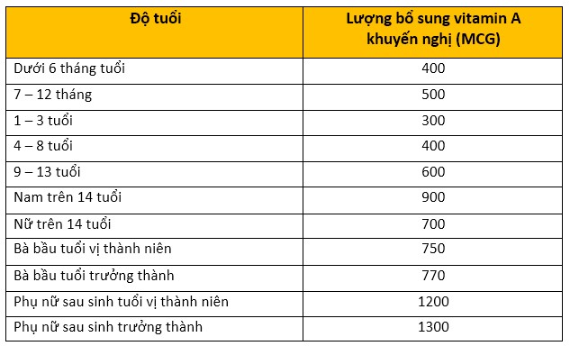 Bao nhiêu vitamin A bạn cần phụ thuộc vào nhiều yếu tố bao gồm tuổi tác, giới tính và việc bạn có đang mang thai hay đang cho con bú hay không.