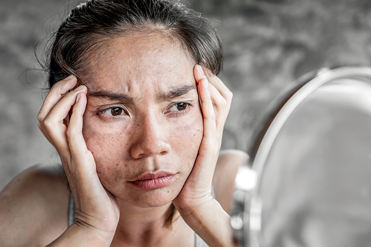 Sự thay đổi của các hormone nội tiết cũng là nguyên nhân khiến làn da của chúng mình trở nên tối, sạm hơn. Theo đó, sự mất cân bằng trong nồng độ hormone estrogen hoặc testosterone, bất kể tăng hoặc giảm đều có thể ảnh hưởng đến tình trạng da, khiến da đậm màu hơn, dễ phát triển các vấn đề như nám da và mụn trứng cá.