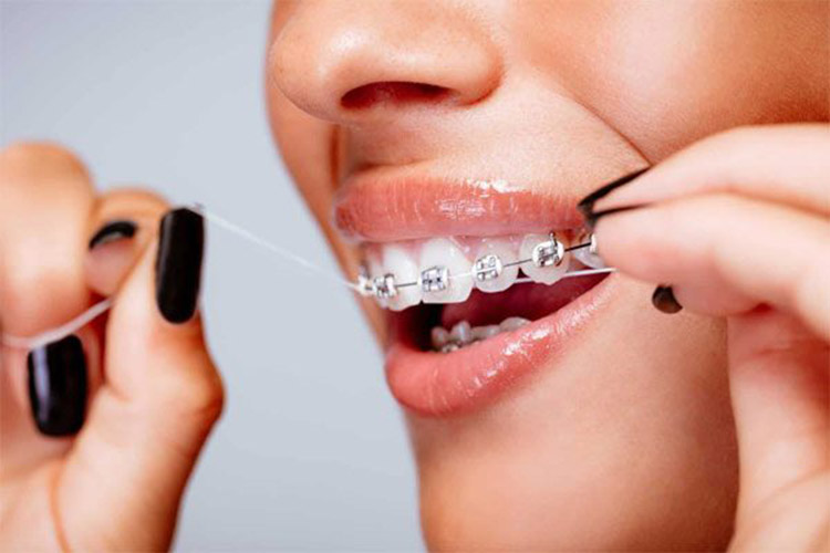 Chỉ nha khoa là sản phẩm quen thuộc với nhiều người và càng quan trọng khi niềng răng. Bạn dùng đoạn chỉ nha khoa dài khoảng 20 – 25cm, luồn sợi chỉ qua dây cung và thực hiện động tác kéo ra kéo vào, hất lên hất xuống để làm sạch kẽ răng.